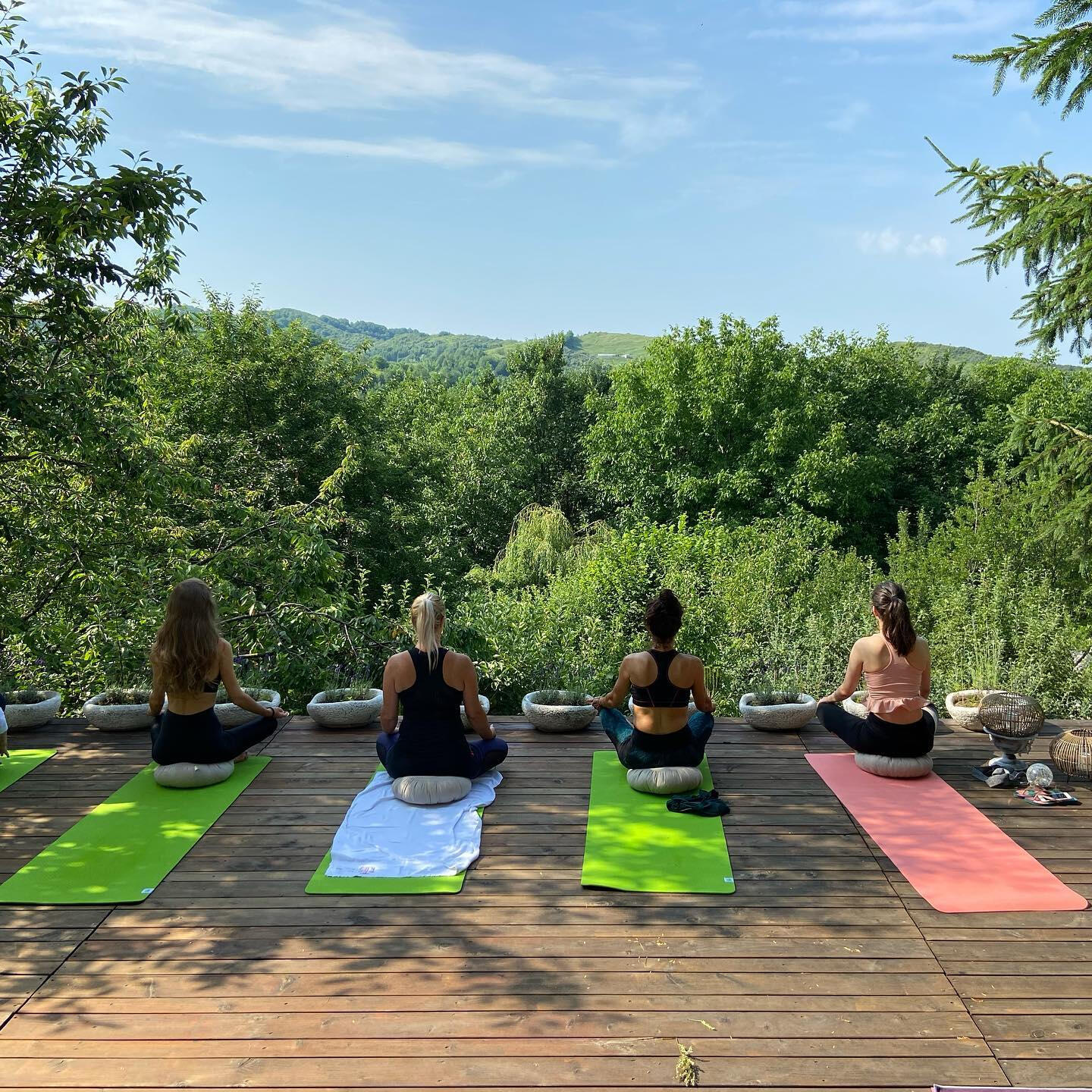 Each day, we have two yoga sessions outside on custom-made wooden decks - one covered and one uncovered, offering a fantastic view. During breaks between yoga, meals, and activities, there are several scenic areas within the center - some in the sun, others in the shade - with hammocks, swings, or benches for reading, working, socializing, or relaxing. Additionally, there's an outdoor gazebo equipped with power outlets and Wi-Fi, providing a comfortable environment for checking in with your laptop.We also offer the use of several mountain bikes at no charge for exploring the area. Masha has the habit of taking a half an hour ride before the morning Yoga session, and you are welcome to join her. Approximately three times a week, depending on demand, we go on a 1.5-hour hike to a nearby viewpoint or a remote hillside village that only has a few remaining homes from a 2015 landslide. On request (no extra charge) we do hikes in the Bucegi Mountain (shortest hike: 4 hours) Don't forget to bring comfortable walking shoes. On Saturday evenings, we light a campfire, reflecting on the day and enjoying a glass of wine.